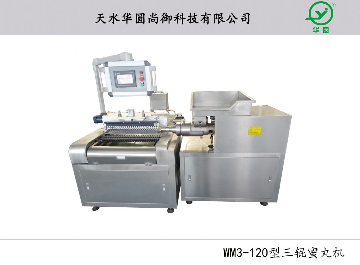 WM3-120型三辊蜜丸机,主要是供中药厂制作3g、6g、9g三种蜜丸之用,也可根据用户需求生产3~10克的蜜丸。本机有如下特点:
