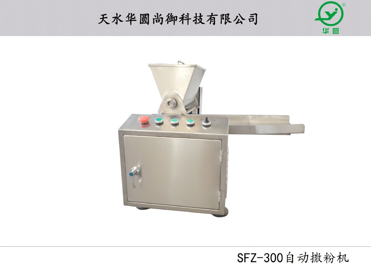 SFZ-300自动撒粉机是我公司最新研制的新产品,主要配套各类制丸机制出的丸剂物料进行包粉加工。使物料表面均匀的附着一层粉料,并且使丸剂物料之间互不粘连而顺利进入下一道工序。
